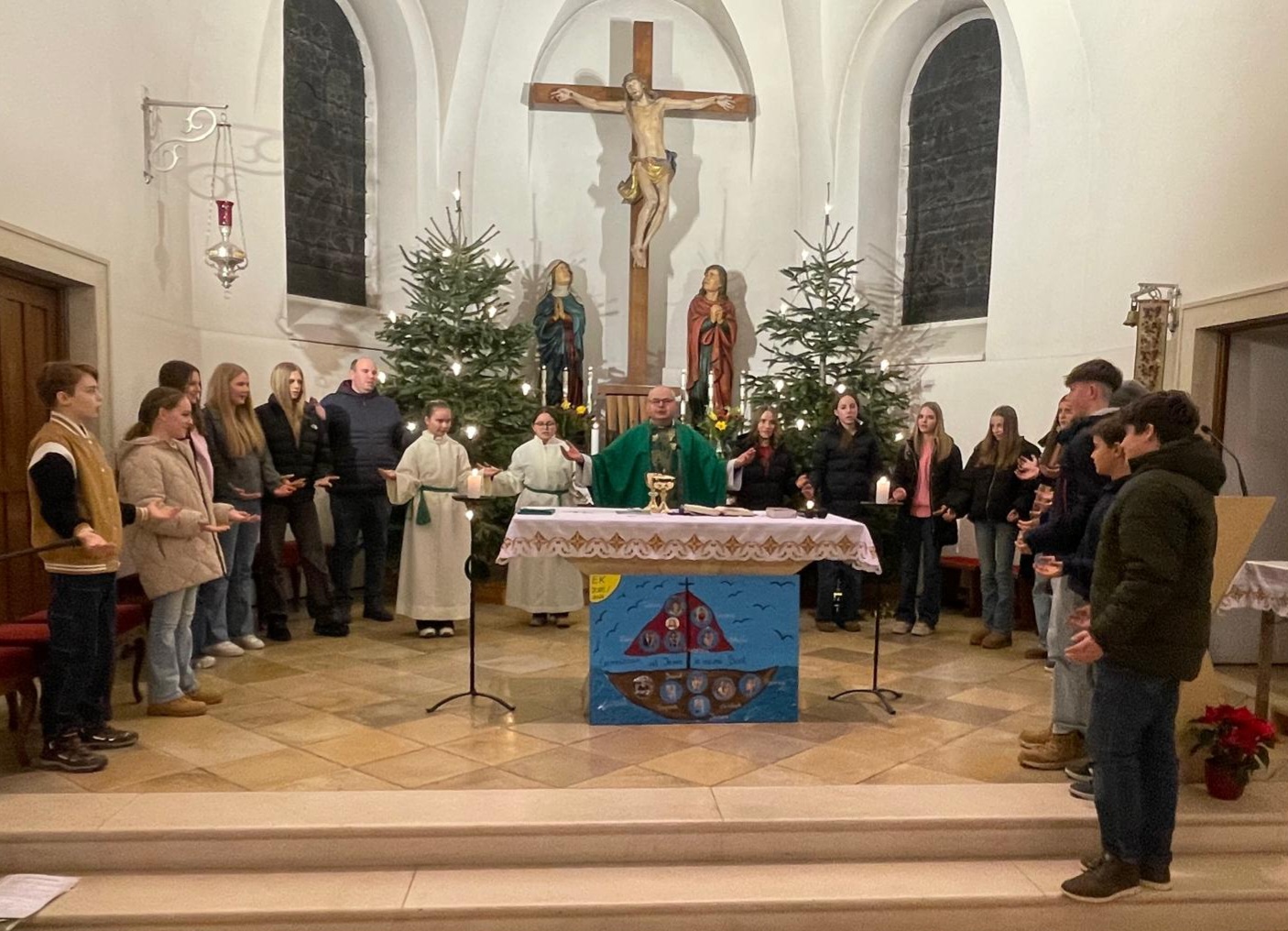 Also wer die Vorstellungsmesse versäumt hat, sollte sich unbedingt den Termin für die Firmung, 30.05.2026/14:00 Uhr, vormerken! Achtung - das ist ein Samstag! Hintergrund: der Firmspender, Dr. Husquarva, steht nur am Samstag zur Verfügung. Nachdem die Firmbegleiter von Dr. Huscava bei einer anderen Firmung so begeistert waren, haben wir uns entschlossen dieses Mal die Firmung für Samstag anzusetzen. Also Termin vormerken, zeitgerecht kommen und eventuell den Refrain von "we are the world" anschauen - vielleicht ist es ja wieder das Schlußlied - und wir bilden GEMEINSAM einen Chor.